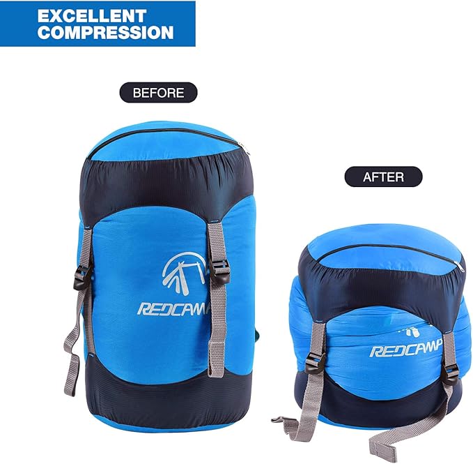 REDCAMP Nylon Compression Stuff Sack, 10L/17L/27L/40L Lightweight Sleeping Bag Compression Sack Great for Backpacking, Hiking and Camping,Blue/Yellow/Army Green/Black