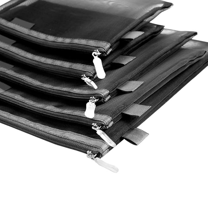 - Set of 5 toiletry bags provide attractive and lightweight solution to many storage needs. This mesh bag is perfect for organizing small things to keep them handy. It can be used as cosmetic bag, pencil case, coin purse, make up bag travel kit, travel organizer bag, or to keep notes, check, bill and so on