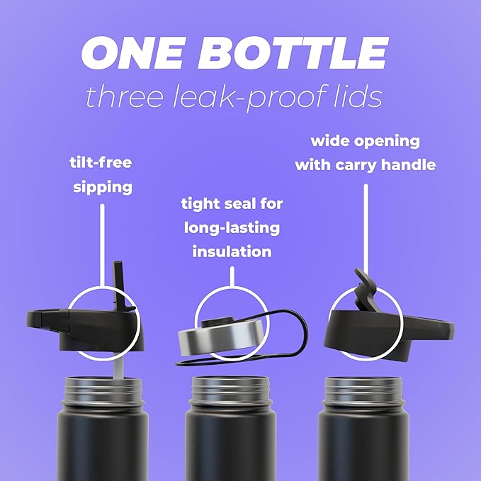 - Includes 3 Lids: YES, Iron Flask comes with THREE different LEAK PROOF lids. Carabiner Straw Lid with 2 Straws, Flip Lid, and a Stainless Steel Lid! *NOTE: The stainless steel lid is plastic from inside and stainless steel from outside*