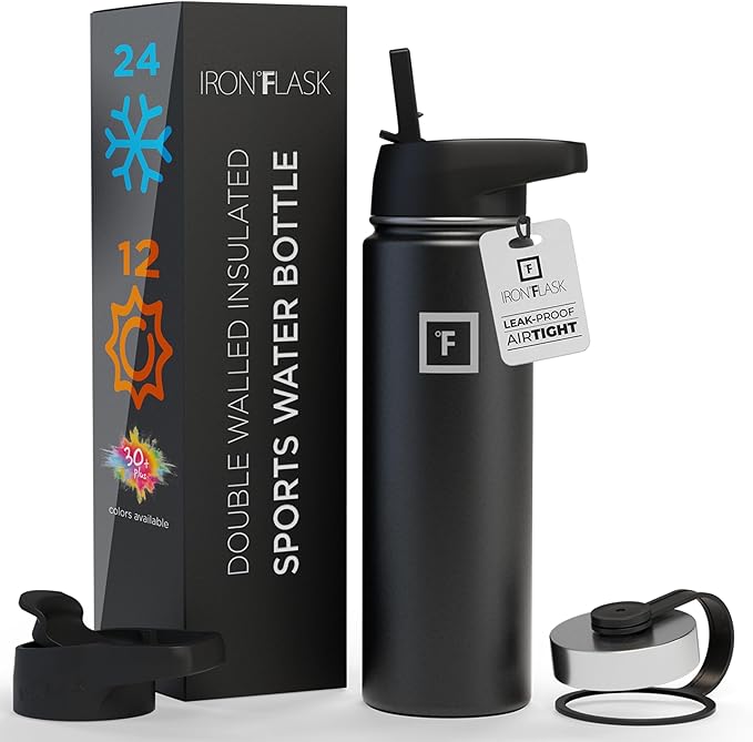 - Insulated Sports Water Bottle: Goodbye sweat! The double wall insulation makes the Iron Flask sweat-free! It keeps your drink COLD for up to 24 hours, and HOT for up to 12 hours. *NOTE: ONLY the 14 Oz, 18 Oz, & 22 Oz fit in cupholders
