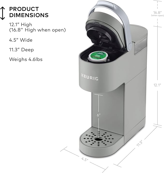 Keurig K-Mini Single Serve K-Cup Pod Coffee Maker, 6 to 12oz Brew size, with Cord Storage, Perfect for Small Spaces, Studio Gray