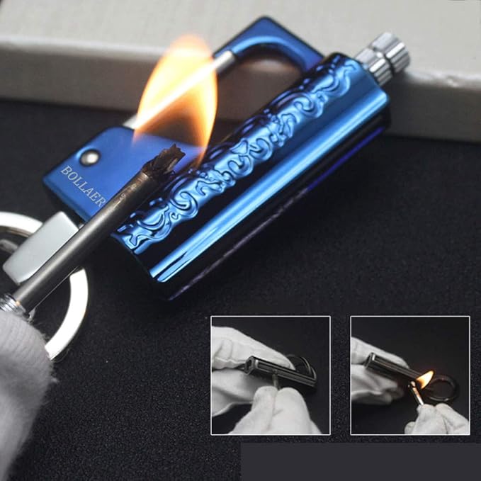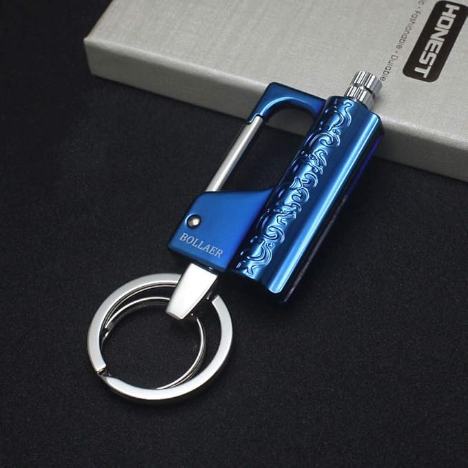 BOLLAER Outdoor Emergency Fire Starter Flint Match Lighter Keychain, Flint Metal Matchstick Fire Starter with Keychain for Camping Hiking Best Gift (Blue)
