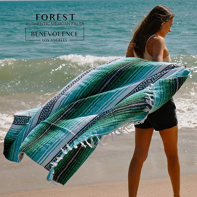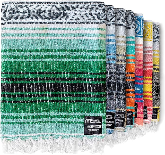 Benevolence LA Authentic Handwoven Mexican Blanket, Yoga Blanket - Perfect Outdoor Picnic Blanket, Beach Blanket, Camping Blanket, Equestrian Saddle Blanket, Serape Blanket 50x70 inches - 1 Blanket