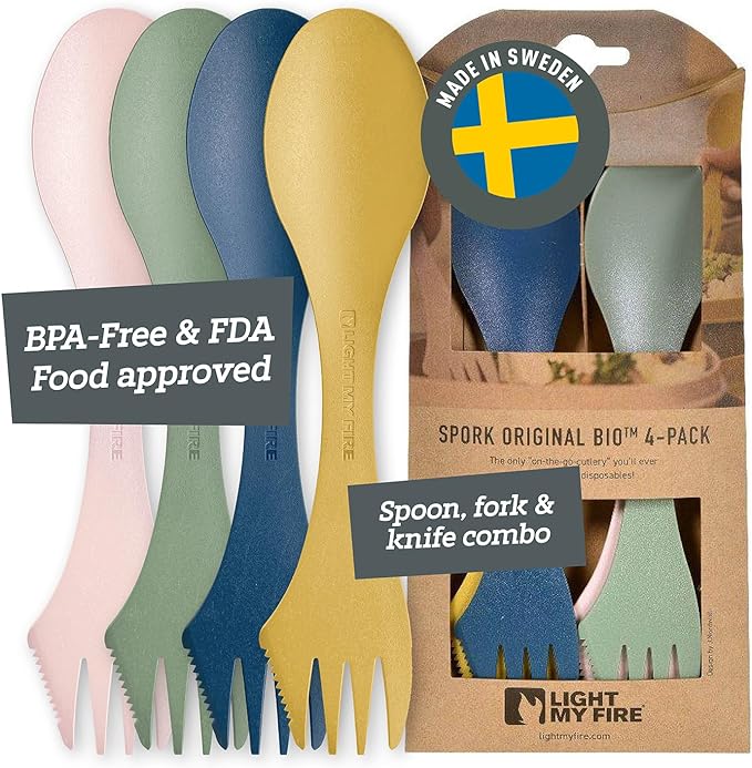- SAY GOOD-BYE TO DISPOSABLES our camping utensil set spork is the only “on-the-go cutlery” you will ever need for eating on outdoor wilderness adventures. Starve the landfills with our responsibly made utensils. 4 sporks included. Color: Nature