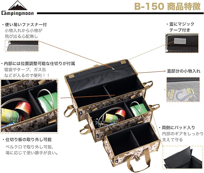 CAMPINGMOON Gear storage box Peg Tent Stake hammer Lantern JP-B-150