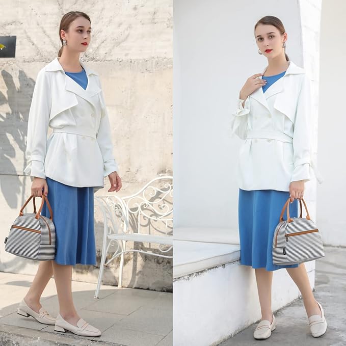 FlowFly Insulated Lunch Cooler Bag - Tote Bag Organizer for Women/Men, White & Black Stripe