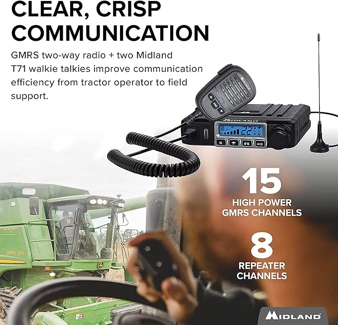 Midland - MicroMobile MXT115 - T71VP3 Farm Radio Bundle - 15 Watt GMRS Two-Way Radio Magnetic Mount Antenna and X-TALKER Two-Way Radio - repeater channels Farm Ranch Combo Pack