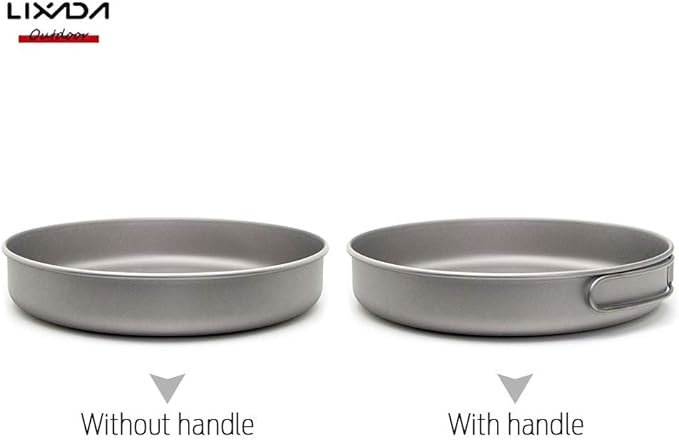 - NOTE: Pay attention to the models. Model Ta8330 has no handle. Other three Ta8331 / Ta8333 / Ta8335 has handle.Lixada ultralight titanium fry pan designed for Single Person camping.