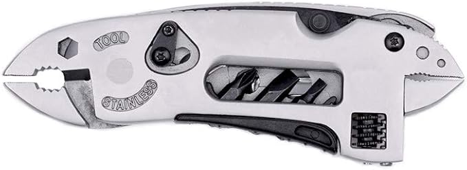 Multifunction Hardware Stainless Steel Wrench & Allen, Screwdriver,Knife, saw blade, SawCan Opener, Bottle Opener & Much More (Silver)