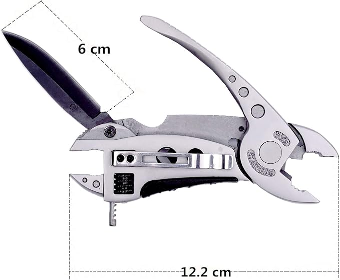 - ★Multi Tool with Mutil Features: Pliers, wrench, phillips screwdriver, knife, wire cutter and so on. It is a true multifunction utility tool.