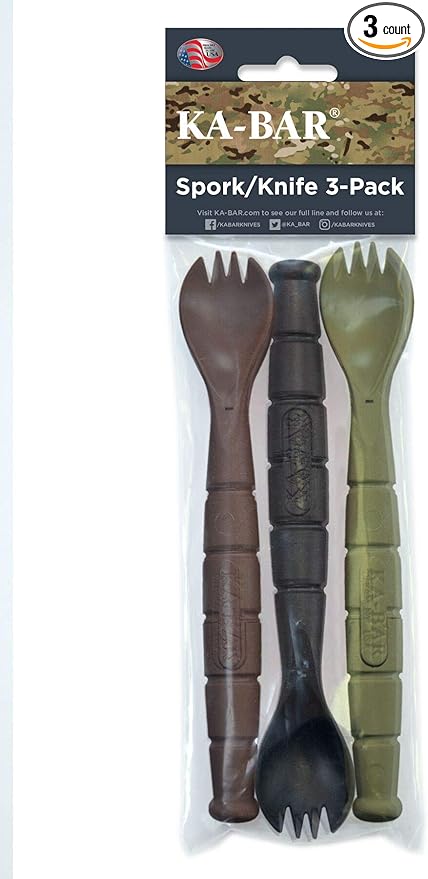 Kabar - Field KIT Spork/Knife - 3 Pac with 1 OD Green - 1 Black - and 1 Dark Brown