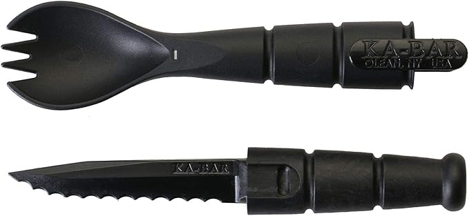 - Features: Spork/Knife Eating Utensil Handle separates to remove knife