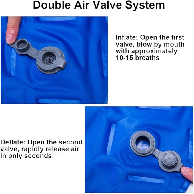 - INFLATING CAMPING PAD TECHNOLOGY: Experience our easy-to-use air valve that allows for quick inflation (in 10 - 15 breaths). The two-layer valve design promises a positive lock without leaks and a deflation in one second without complications