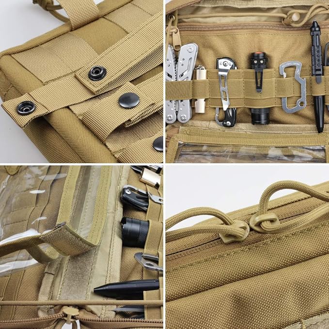 - BUILT FOR TOUGH OUTDOOR OCCASIONS: Molle Admin Pouch is made of military-grade 1000D polyester material for better tear & water resistance. Strong copper snaps and durable two-way metal zippers support the pouch to sustain in the harshest environment. We offer 30 day money-back of quality guarantee.