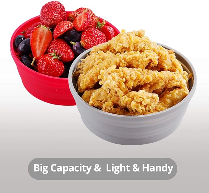Silicone Expandable Collapsible Bowl for Travel Camping Hiking (Gray(L))