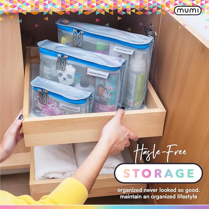 - Travel Organizer for Toiletries and Skincare - Stay ready for any trip with MUMI’s TSA approved clear toiletry bags. These water-resistant travel cosmetic bags keep skincare, toiletries, and essentials secure in your suitcase or carry-on.
