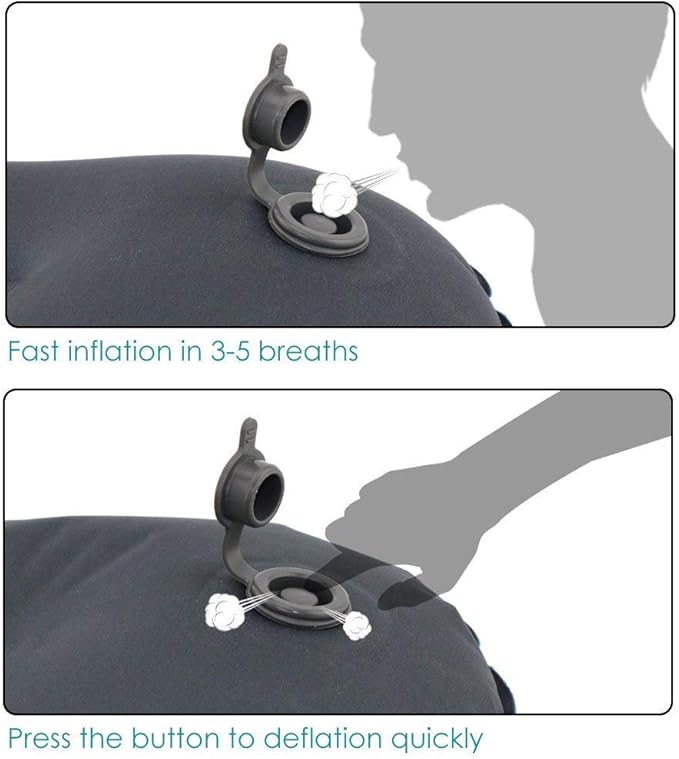 - EASE OF USE - - Inflate pillow by mouth with approximately 3-5 breaths. Once you are done you can conveniently deflate the pillow with the Quick Deflate feature which rapidly releases air after use in only seconds. With the unique technology in this compact and light pillow, you are able to adjust firmness to your personal sleep preference.