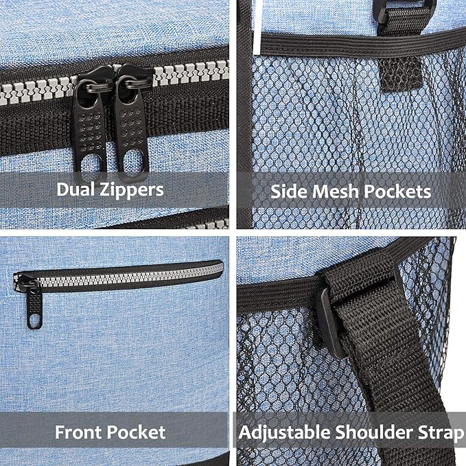 - PORTABLE DESIGN - The adjustable shoulder strap also facilitates you to take this lunch bag out for office or gym. Double zippers design for easy access. You can store small things in the two side mesh and front pocket.