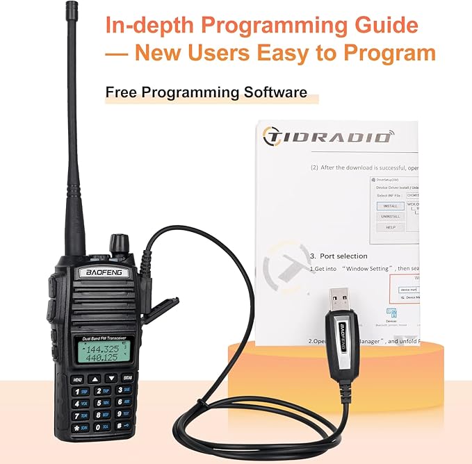 - ✔️Baofeng Programming Cable: Easy to use,compatible with most baofeng radio.Support Chirp,works with Windows 7/10 System,you can program your portable ham radio using USB programming cable.