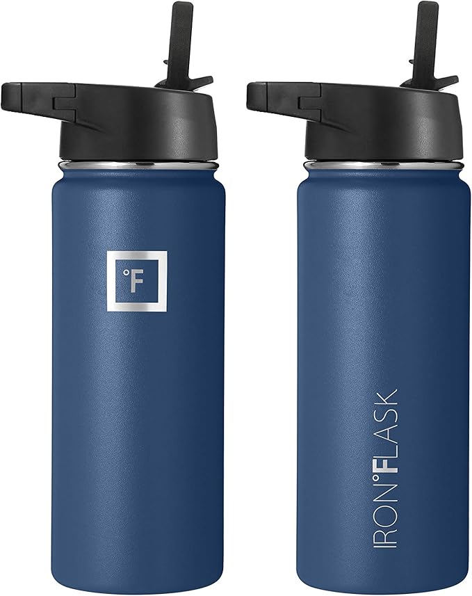 IRON °FLASK Sports Water Bottle - Wide Mouth with 3 Straw Lids - Stainless Steel Gym & Outdoor Bottles for Men, Women & Kids - Double Walled, Insulated Thermos, Metal Canteen - Twilight Blue, 18 Oz