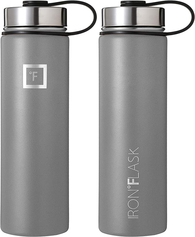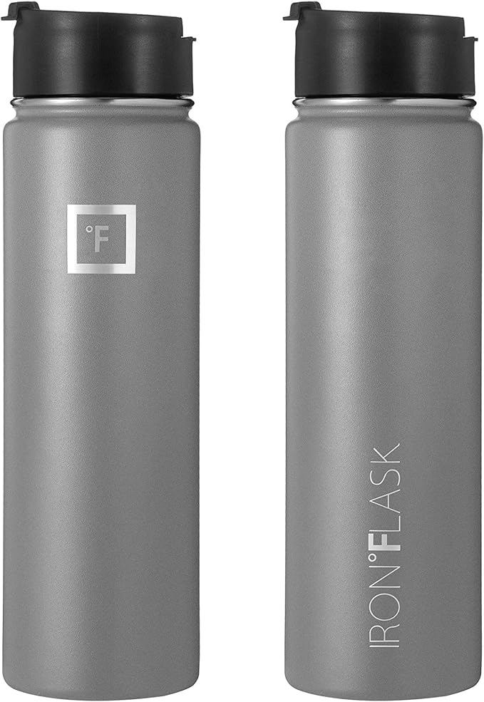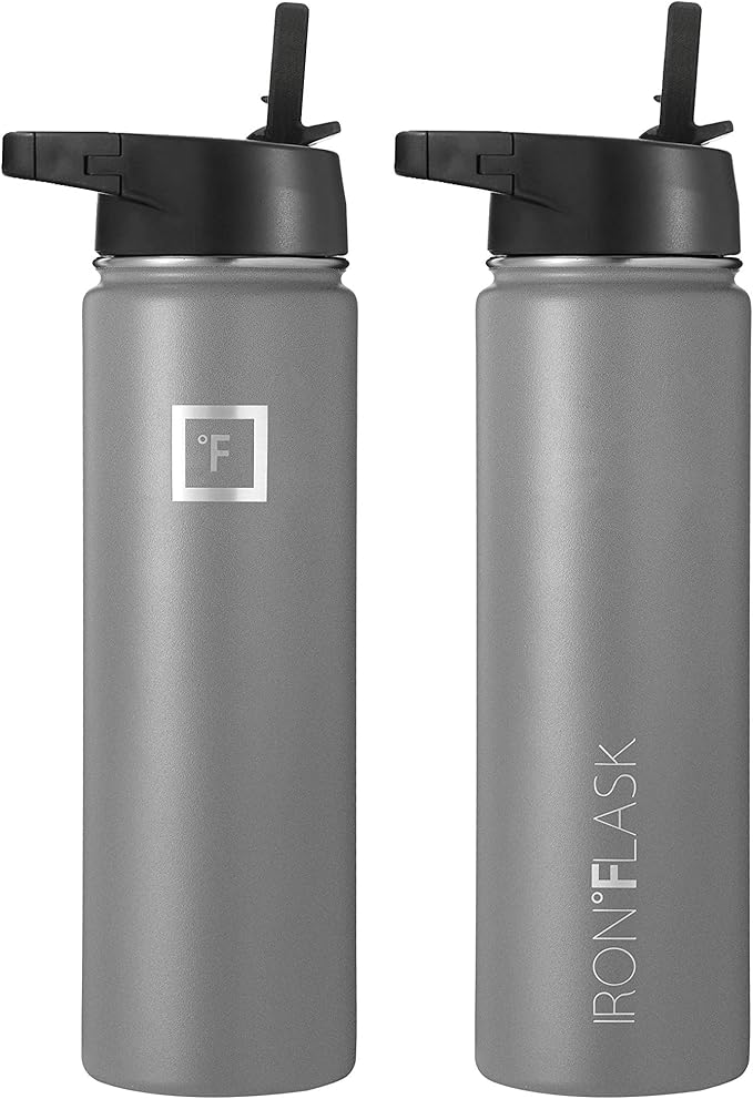 IRON °FLASK Sports Water Bottle - Wide Mouth with 3 Straw Lids - Stainless Steel Gym & Outdoor Bottles for Men, Women & Kids - Double Walled, Insulated Thermos, Metal Canteen - Graphite, 22 Oz