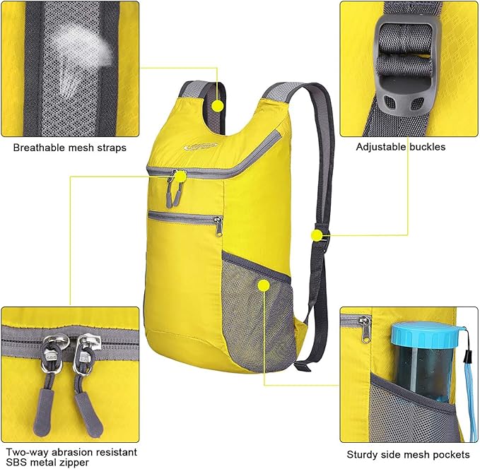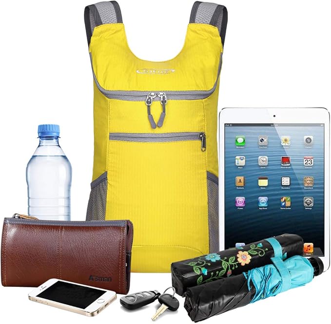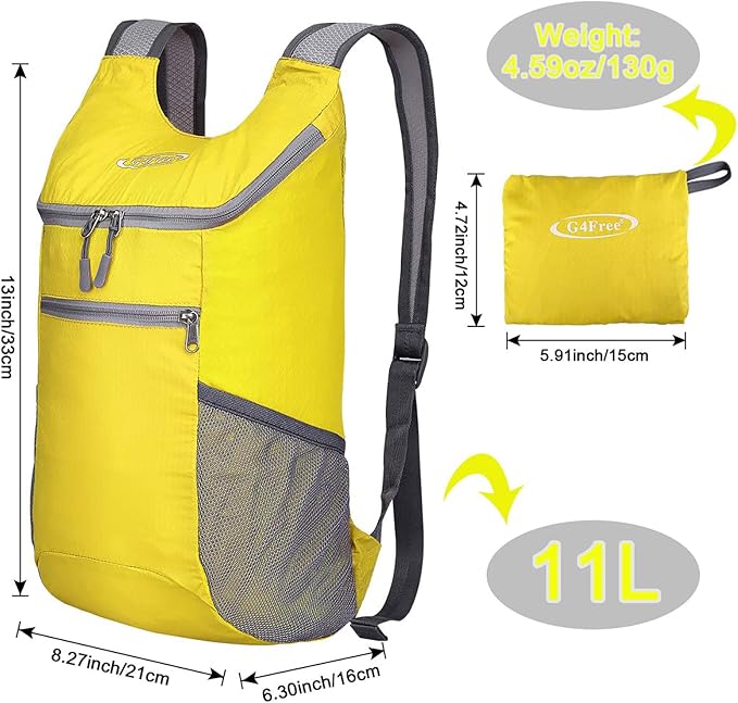 - Convenient and Lightweight: This hiking daypack is easy to fold and fit into an ultra-compact pouch. It's convenient to pack in your suitcase, purse, or car as a travel backpack without taking up too much space. Unfold size: 8.27x6.30x13 inches, Ultralight weight: 4.59oz