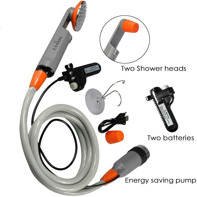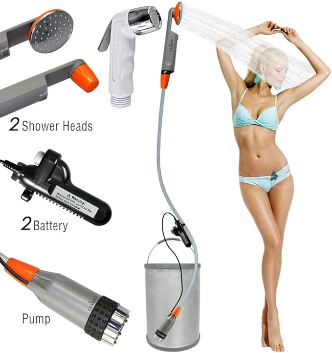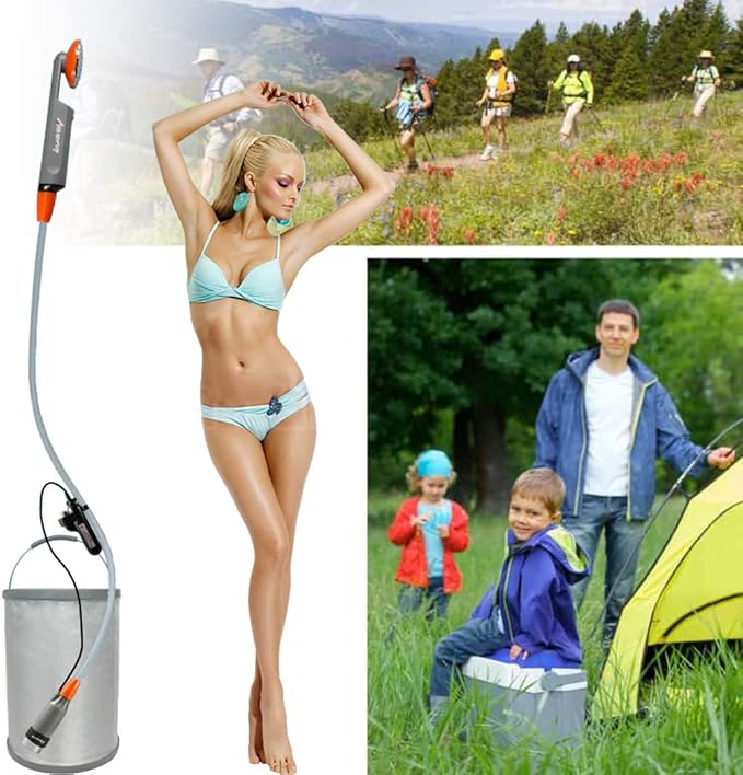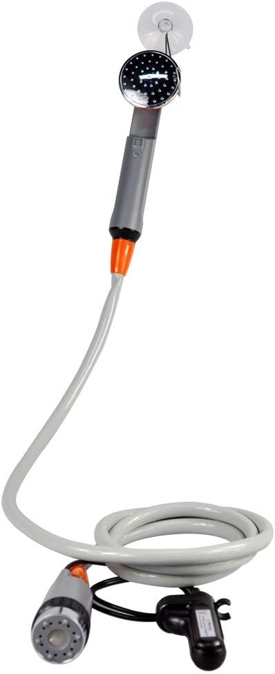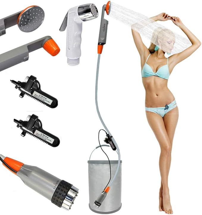 - ❤[Safe Outdoor Shower] : Conform to the safety requirements of RoHS standard, EN 55014-1 and EN55014-2. The water-resistant pump and water filter system guarantee clean water. The suction cup and hook are ideal for you to hang the showerhead from a tree or mount on the car window.