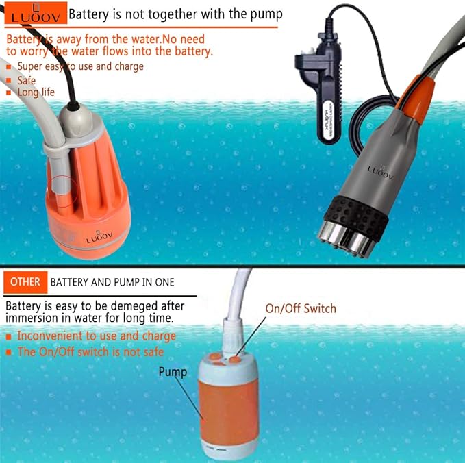 - ❤[Portable Shower with Battery] : Connect pump with supplied battery and push on the switch of battery to start. Pump the watter without immersing the battery in water. Full charge allows up to 45 mins of continuous use. The battery can be attached to the water pipe instead of thrown to the ground randomly.