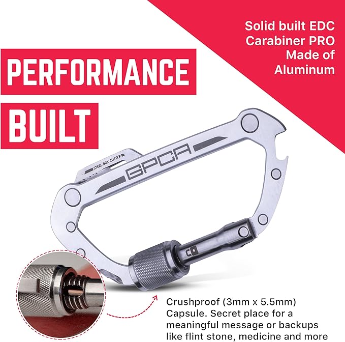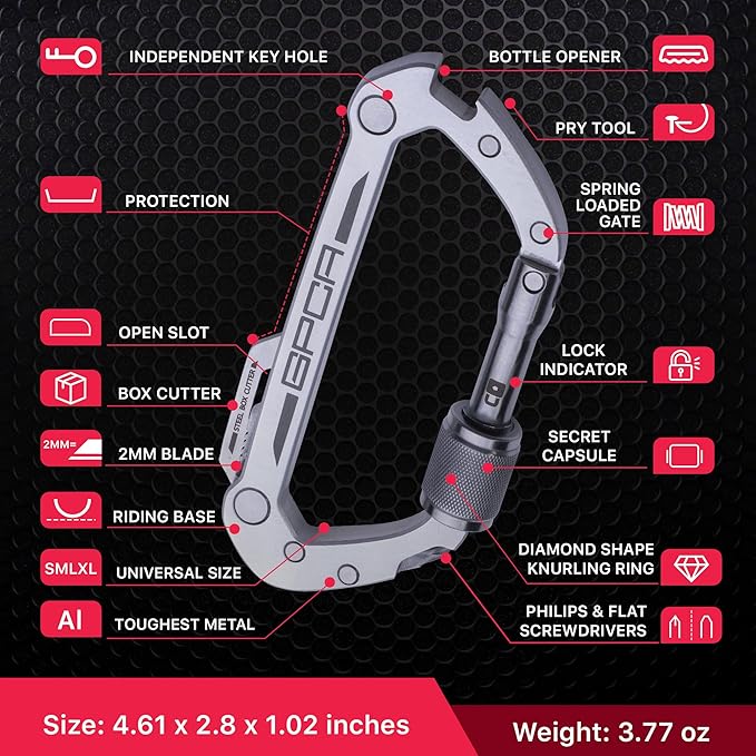 - PREMIUM GRADE MATERIALS: GPCA Carabiner Keychain Clip is known for its strength and durability. It serves as a reliable travel accessory, perfect for outdoor adventures. With a high load-bearing capacity, our carabiner keychain clip is not just for keys. It can handle heavier items like tools, flashlights, or even small bags, making it a versatile tool for any situation.