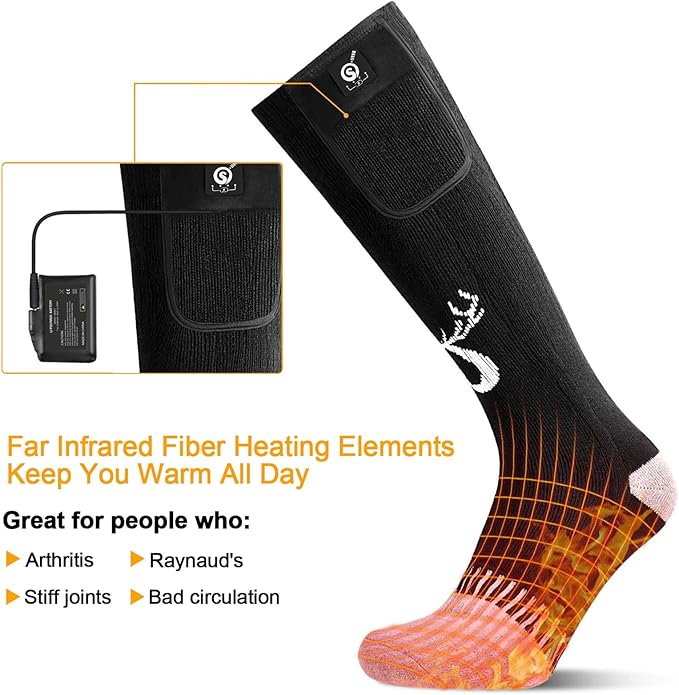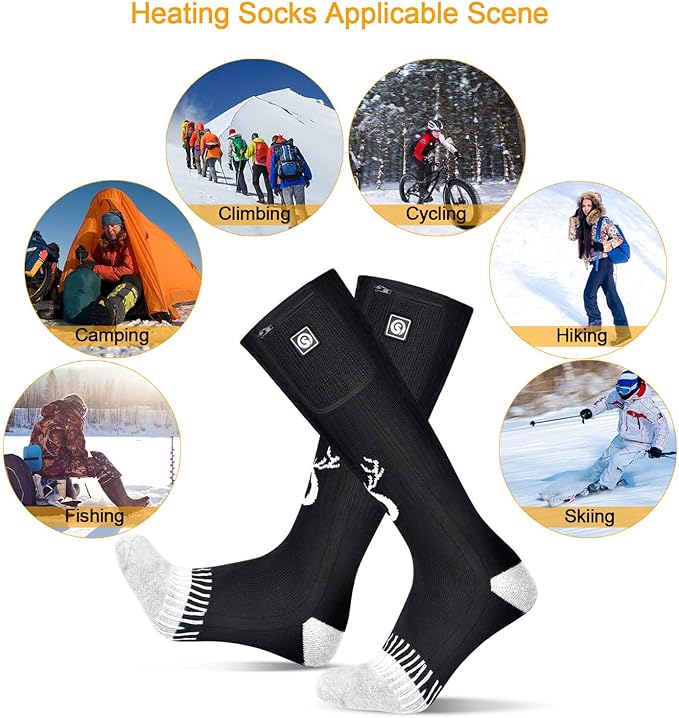 - 【Widely Uses】: SNOW DEER heated socks are used by many people for a variety of different reasons ranging from working in cold conditions, hunting,fishing,skiing,motorcycling,hiking.and even just having cold feet around the house. it is a perfect solution for those chilly winter nights and days.