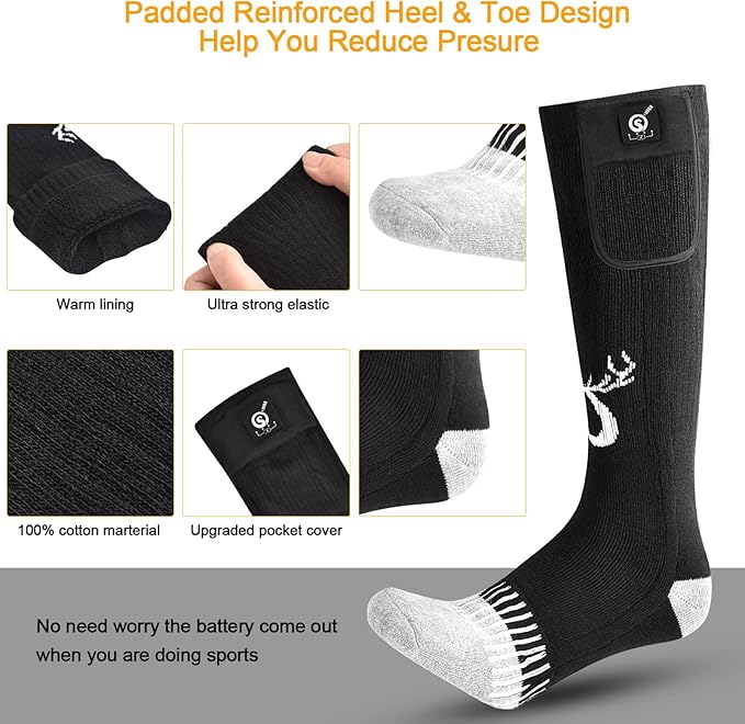 - Recommended Uses For Product : heated socks for camping hiking