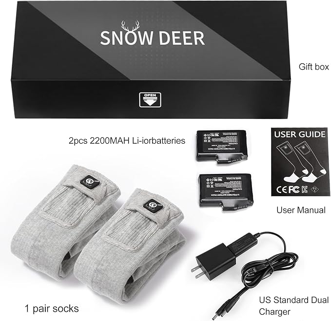 - 【Improve Blood Circulation】it is a perfect solution for those chilly winter nights and days.SNOW DEER heated socks are used by many people for a variety of different reasons ranging from working in cold conditions, hunting,fishing,skiing,motorcycling,hiking.and even just having cold feet around the house.