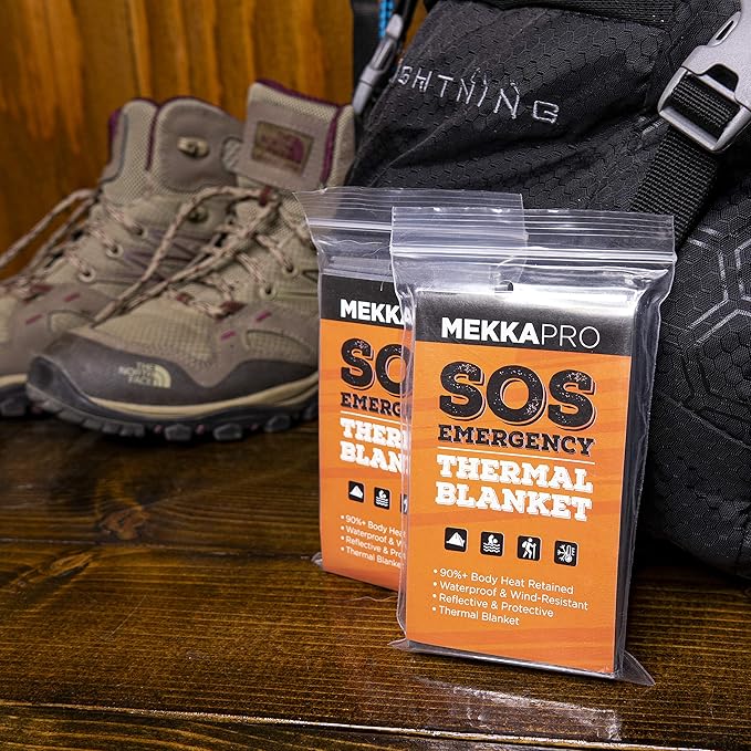 MEKKAPRO Emergency Mylar Thermal Blankets (4-Pack), Pocket Sized for Emergencies, Camping, Outdoors, Hiking, Survival, First Aid (Thermal Silver)