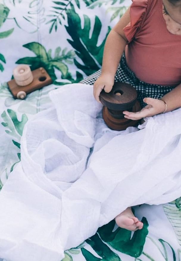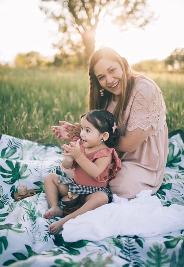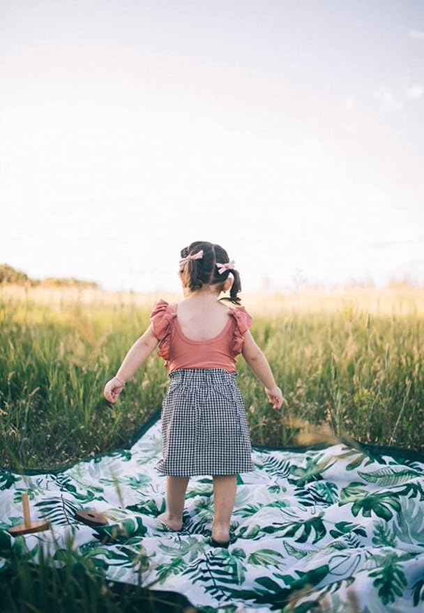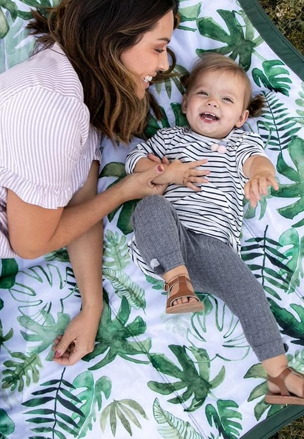 Little Unicorn Outdoor Family Picnic & Beach Blanket, Water-Resistant, Compact Fold, Large Size, 5 x 7 feet, (Tropical Leaf)