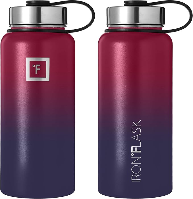 - INSULATED SPORTS WATER BOTTLE: Goodbye sweat! The double wall insulation makes the Iron Flask sweat-free! It keeps your drink COLD for up to 24 hours, and HOT for up to 12 hours. *NOTE: ONLY the 14 Oz, 18 Oz, & 22 Oz fit in cupholders*