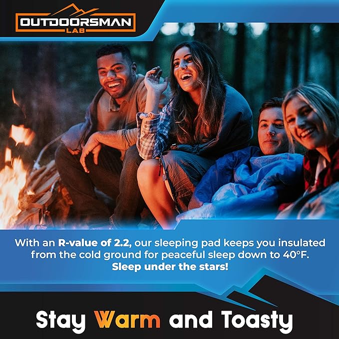 - Sleep Better Under the Stars After a Long Day of Hiking: Even though it is very compact, this camping pad expands to 73 x 22 and has an optimal thickness of 2.2 inches. Active outdoorsmen find this thickness extremely comfortable, even for back sleepers and side sleepers. With an R-value of 2.2, you can stay nice and toasty camping out in temps all the way down to 40 F (4 C). It has no chemical smell and doesn't have noise. You’ll wake up refreshed, energized, and ready to explore nature.