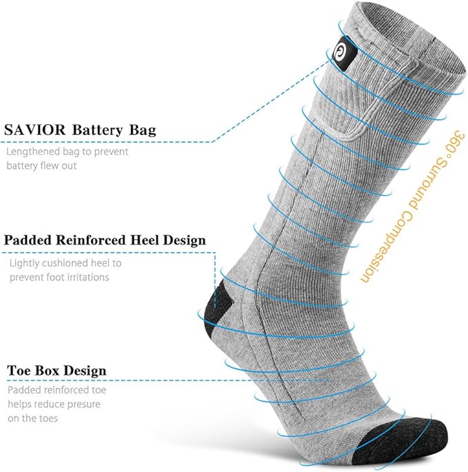 - 【Various Size Option】Savior Heated socks are design for all Men, Women, Male, Female, Boys, Girls and Elders to keep your feet warm. unlike other brands' designs with One size fit all heated socks, We provide S, M, L, XL size options, you can choose your snug-fit heated ski socks according to the size chart shown in the picture