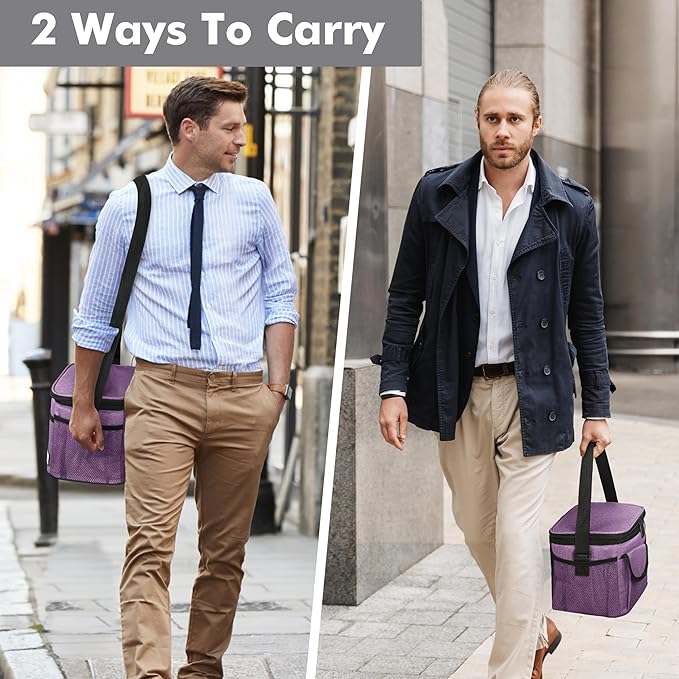 - Convenient Design-Lunch bag features an adjustable shoulder strap for easy carrying, whether you're headed to work or the gym. The double zipper design allows for quick access, while multiple pockets—including 4 additional compartments and 2 side mesh pockets—make it easy to store personal items. This lunch bag for women is both functional and stylish.