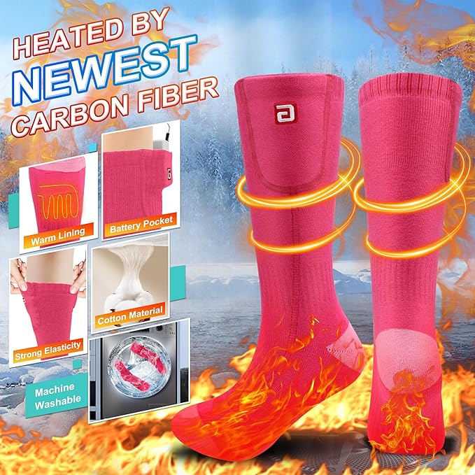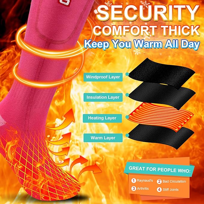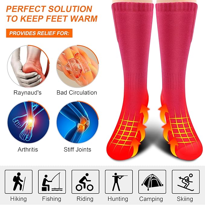 - ❄️【No More Cold Toes】Winter warming heat holder socks for adults, men and women that are electric battery operated heating socks. Foot warmers keep your toes warm and comfortable all day, perfect for skiing, hiking, hunting, ice fishing, and any other indoor/outdoor activities in the cold weather