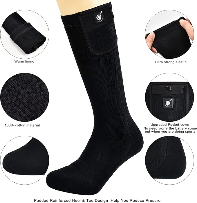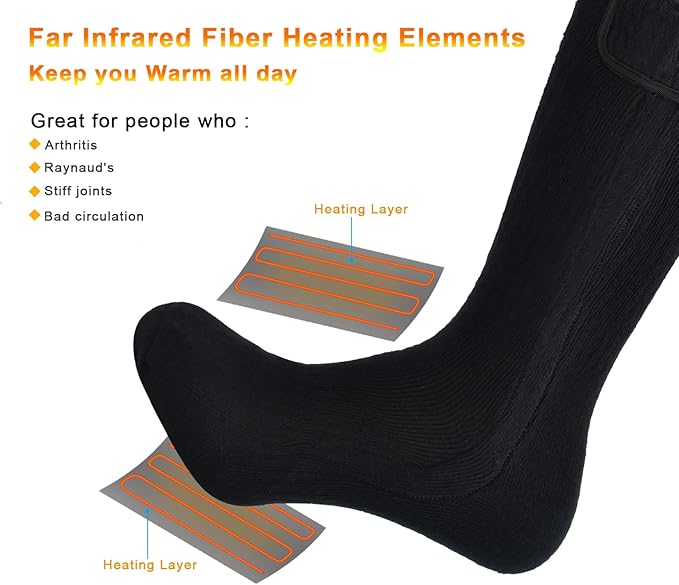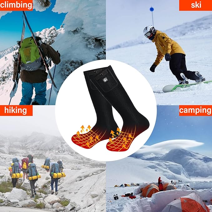 - Recommended Uses For Product : heated socks for camping hiking