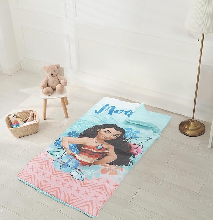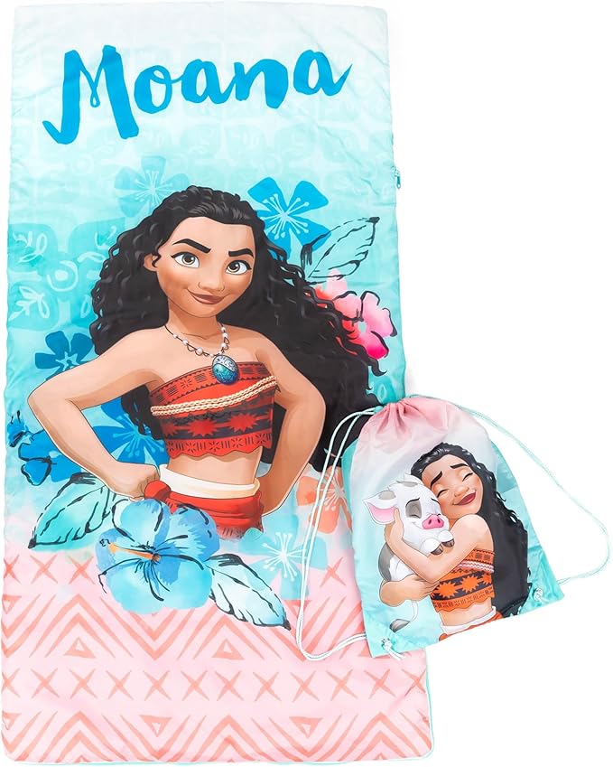 - GREAT GIFT - Moana slumber sack is the perfect gift for your loved ones featuring designs from their favorite Disney Princess. This slumber bag will make any child smile and will transform any sleep over. It rolls up for easy storage and travel. Sure to make bed time exciting!