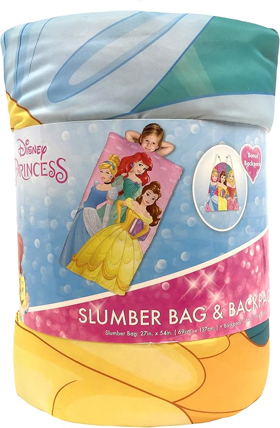 - GREAT GIFT - Princess slumber sack is the perfect gift for your loved ones featuring designs from their favorite Disney Princesses. This slumber bag will make any child smile and will transform any sleep over. It rolls up for easy storage and travel. Sure to make bed time exciting!