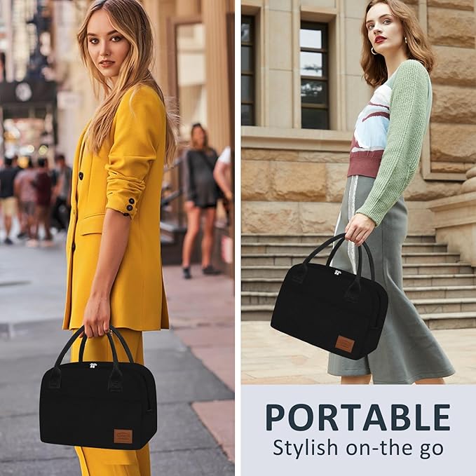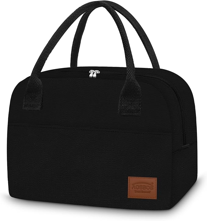 Aosbos Lunch Box for Women Lunch Bags for Adult Insulated Lunch Cooler Bag - Thermal Lunch Tote Lunch Boxes Reusable Meal Prep Containers Bag, Black