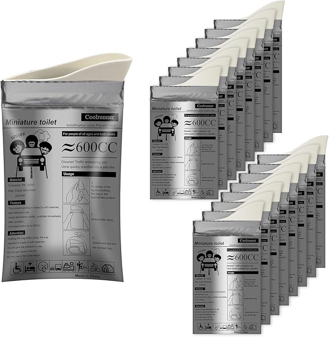 Coolrunner Disposable Urine Bags,8/12/20/24 Pack Camping Pee Bags, Disposable Urinals Vomit Bags for Travel Urinal Toilet Traffic Jam Emergency Portable Toilet Bee Bag for Men Women Kids Patient
