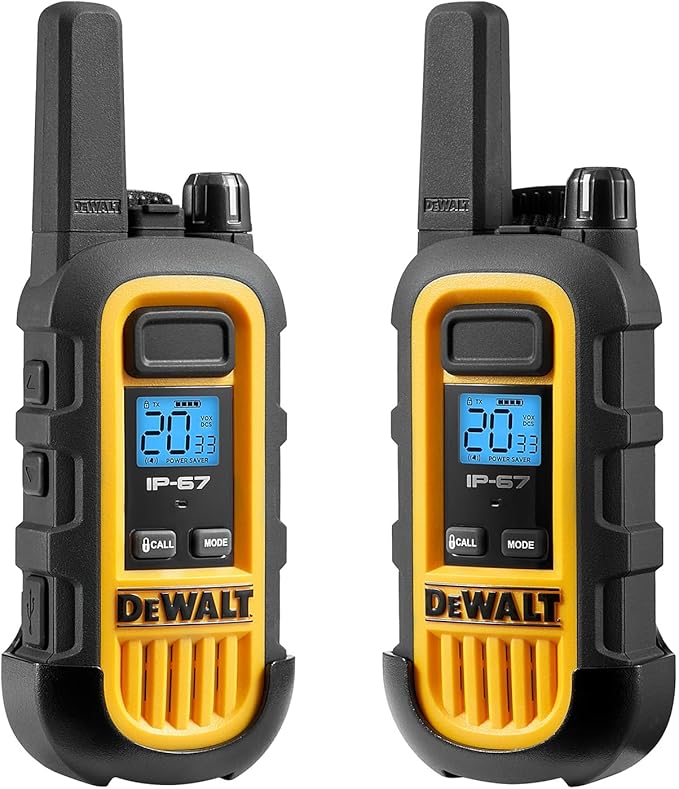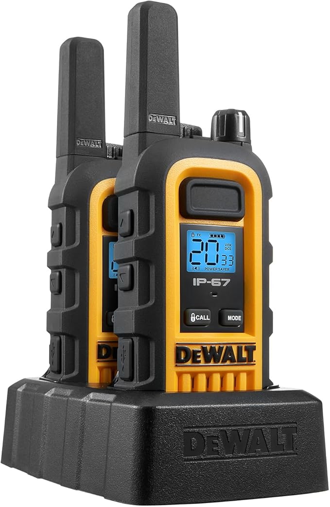 DEWALT DXFRS300 Bundle 1W Walkie Talkies Heavy Duty Business Two-Way Radios, 2 Pack with 2 Headsets (1DXFRS300-SV1)