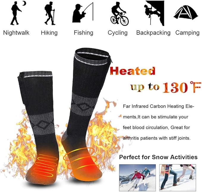 - 【Perfect for Variety of Sports Outdoors】Great for hunting, skiing, fishing, hiking, walking dogs,snowboarding, motorcycle, riding and sporting events.Sun Will heated socks will be a great choice for cold winter.