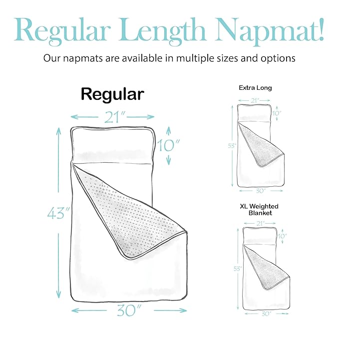 - Size And Fit - The padded sleep mats for kids daycare measures 43" long by 20" wide. With a 33" long x 30" wide blanket and a 10" tall pillow, it's the ideal nap mat with pillow and blanket up to or just over 3 feet tall.