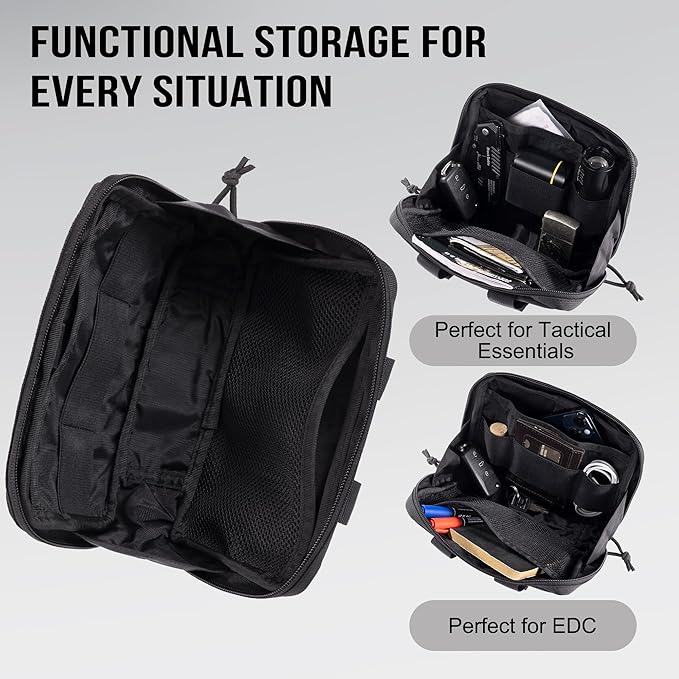 - VERSATILE MOLLE POUCHES: Perfect as a miscellaneous item pouch for combat vest, tactical backpack, or other tactical gears.And these admin pouches are perfect for camping, hiking for daily use,also can be used as a first aid kit to store emergency items