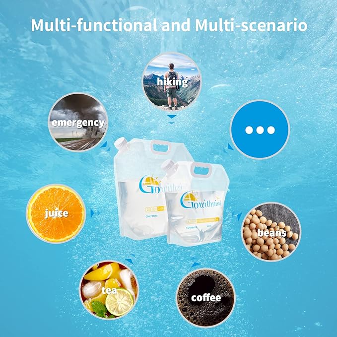 - 【Outdoor Use and Emergency Preparedness】 Gowithwind collapsible water bag are perfect for outdoor activities such as backpacking, camping, hiking, climbing, fishing hunting and daily use. Automobile emergency water. Hand-washing stations in festivals. Fast water storage tool in a disaster like hurricane, fire, drought, earthquake, flooding, which is the most important emergency preparedness in your survival kits!