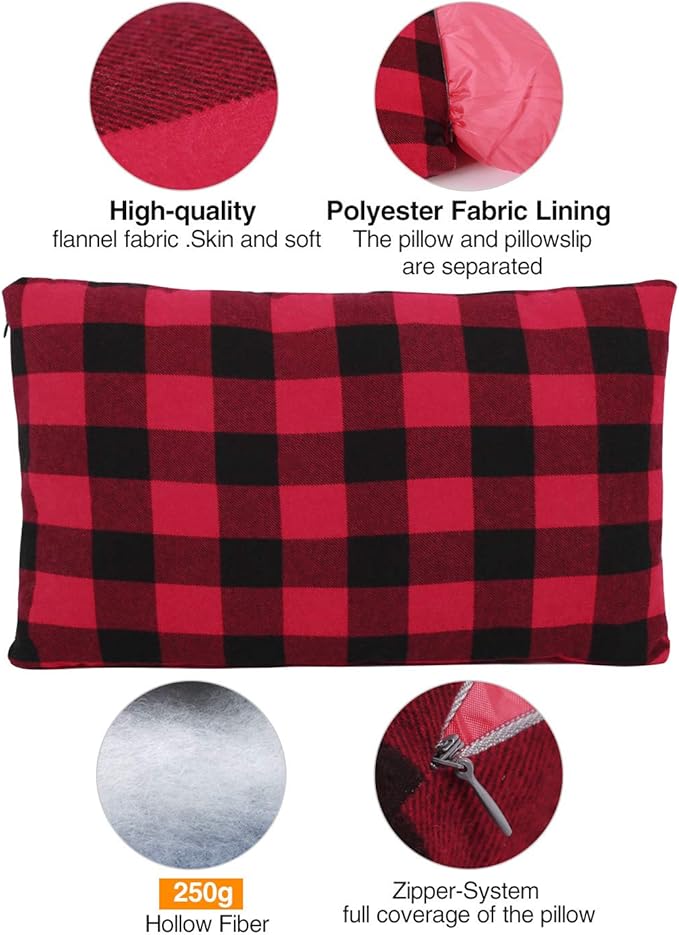 - ▲SOFT: This 2 pack Redcamp travel pillow camping (shell) flannel+(lining) non woven fabric+(filling)250g spun cotton, comfortable fabric gives you a restful sleep.Comes with 2 pack of pillow.